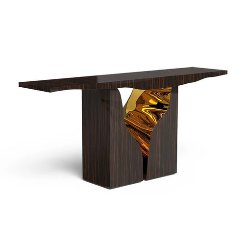 Modern crack effect designer stainless wooden console table
